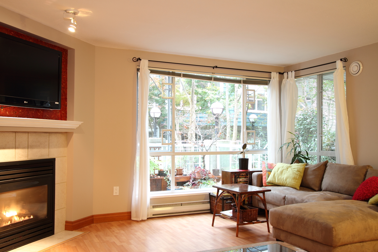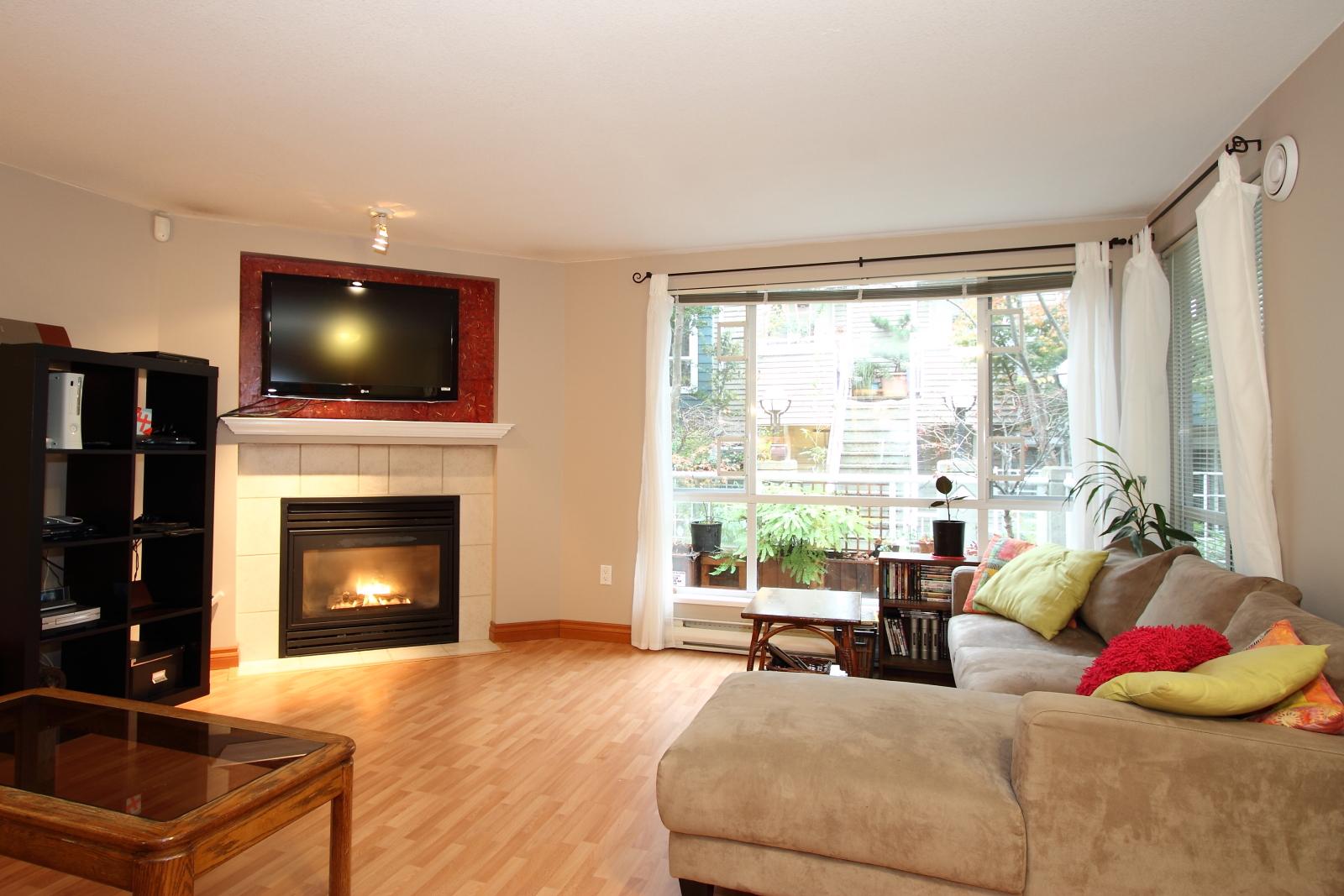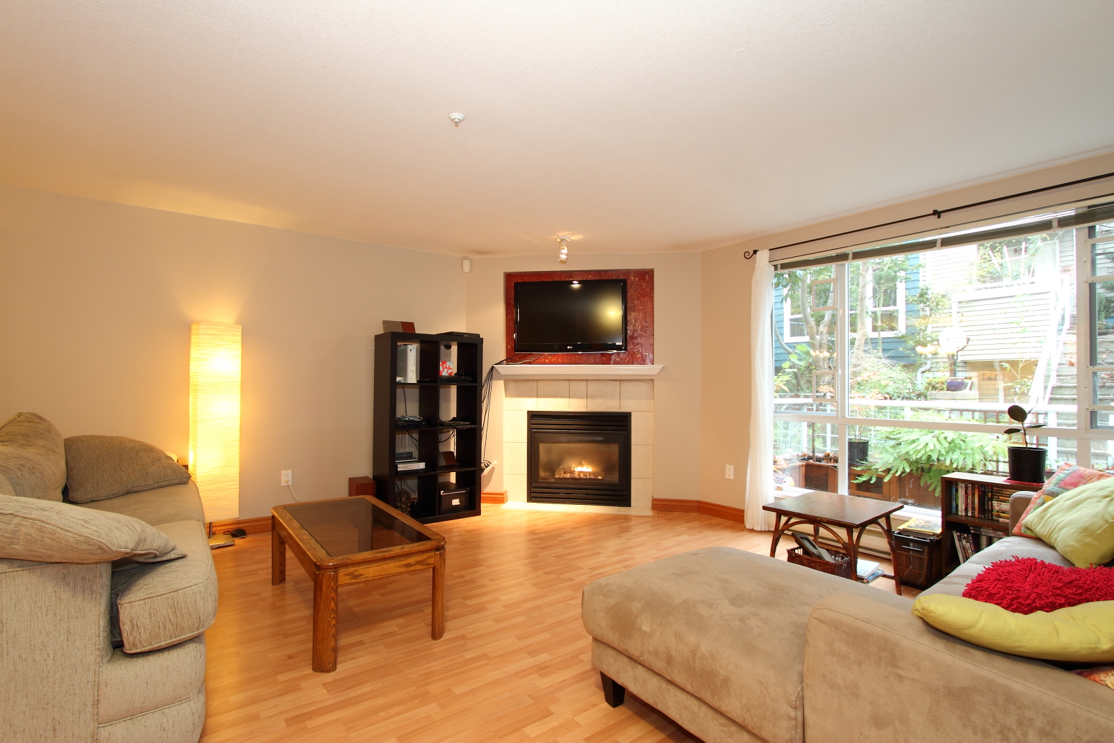 Rarely available! Extra-large One-Bedroom Suite in Sixteen Willows. Like a townhouse with own private entrance via the quiet gated courtyard. Extremely open floor plan will accommodate all size furnitures. Shows beautifully with designer colours throughout, laminate floors, open kitchen & gas fireplace. Professionally landscaped 91 SqFt patio with custom-built planters. Bonus of lots of insuite storage plus a locker down. Pets welcome! This is truly special.