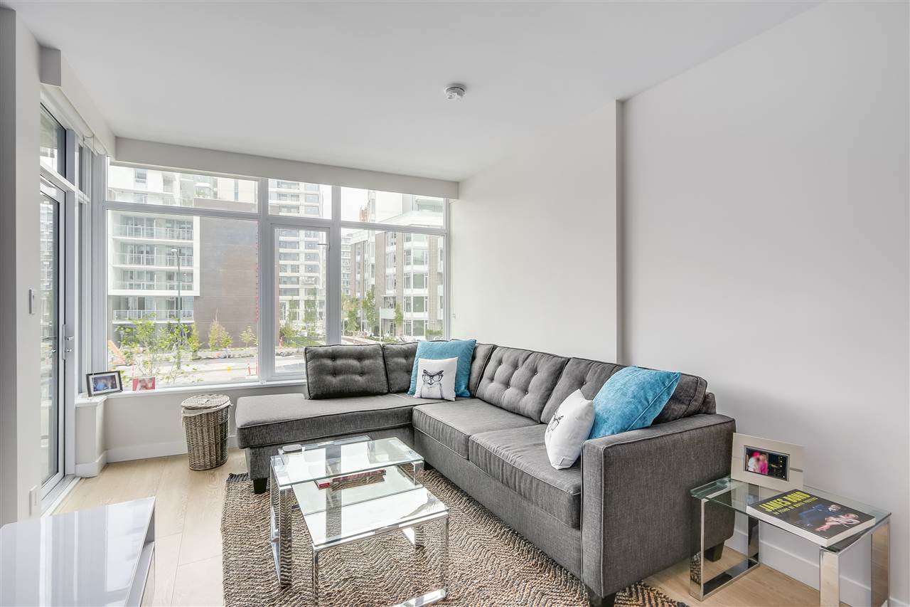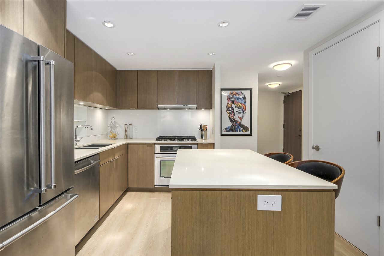 Newest addition to False Creek BLOCK 100 by Onni! LOCATION, LOCATION, LOCATION! 1 bed and flex unit featuring an amazing layout designed by award-winning Chris Dikeakos Architects. European wide-plank laminate flooring throughout, designer kitchen with free-standing island, full line of S/S appliances by KitchenAid and JennAir, full-size washer/dryer. Spacious flex room to be a huge built-in closet or work station or extra storage. Amenities include almost 5,000 sq ft of indoor/outdoor space incl bicycle wash station, rooftop for bbq and a fully equipped gym and multi-purpose room. Walk to Skytrain, Urban Fare, London Drugs, TD, Mario's Gelato ... Includes parking and storage. Can't beat this location! Open Houses: Sat & Sun, Sept 23rd & 24th, 1:00-4:00 PM.