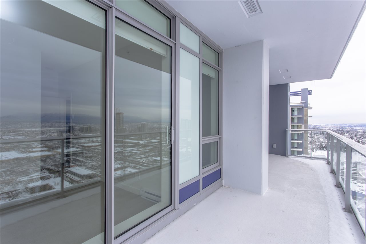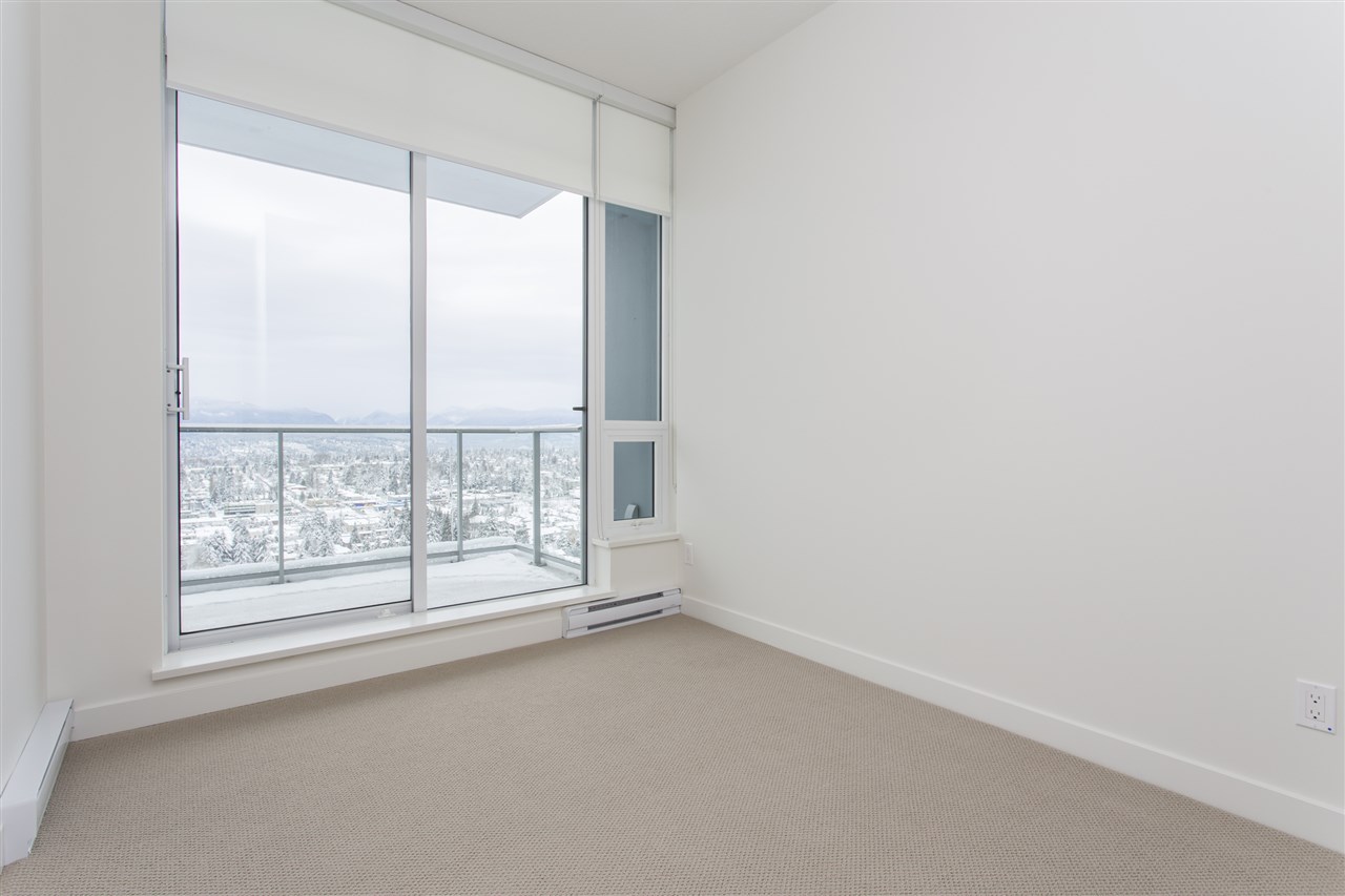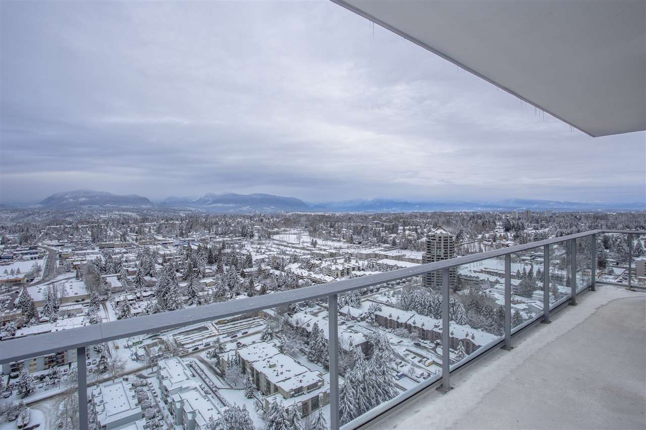 PENTHOUSE WITH STUNNING VIEW OF THE NORTH SHORE MOUNTAINS. Brand new and unoccupied. 850 Sq. ft finished area 2 bed room and den/guest room + 193 Sq. Ft balcony to enjoy the view, Kitch. with Blomberg S.S. gas stove and oven, quartz stone countertops & marble back splash. Blomberg built in Fridge, Dishwasher, Washer/dryer, Panasonic Microwave, floor to ceiling sliders in living room and Mbrm, Resort style amenities such as out door lap pool, hottub, steam room & sauna, Tennis court, golf putting green, Yoga pavilion, fitness centre, pool room with kitchen, theatre, sky garden and much more. 24 hour concierge, steps to central city mall, SFU, King Geo. Skytrain station, Holland park, Banks, restaurants. Easy access to all