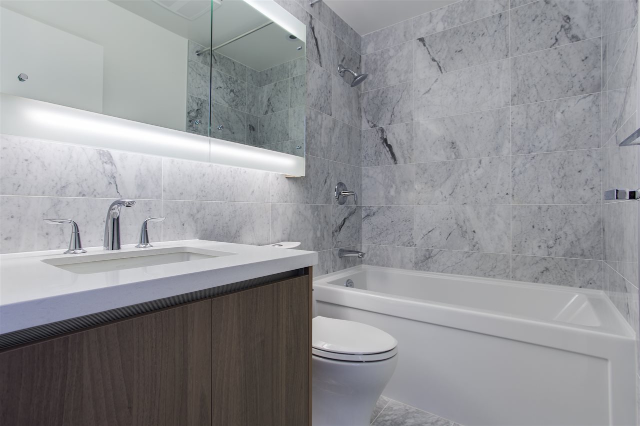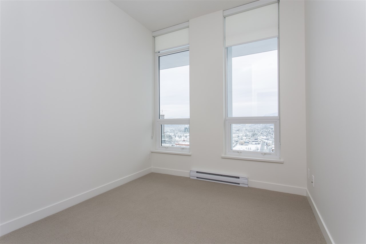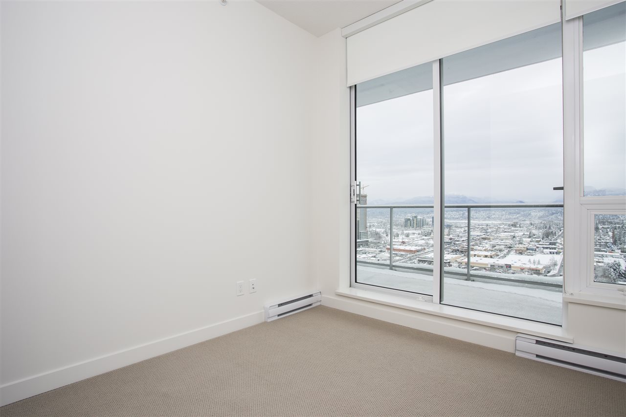 PENTHOUSE WITH STUNNING VIEW OF THE NORTH SHORE MOUNTAINS. Brand new and unoccupied. 850 Sq. ft finished area 2 bed room and den/guest room + 193 Sq. Ft balcony to enjoy the view, Kitch. with Blomberg S.S. gas stove and oven, quartz stone countertops & marble back splash. Blomberg built in Fridge, Dishwasher, Washer/dryer, Panasonic Microwave, floor to ceiling sliders in living room and Mbrm, Resort style amenities such as out door lap pool, hottub, steam room & sauna, Tennis court, golf putting green, Yoga pavilion, fitness centre, pool room with kitchen, theatre, sky garden and much more. 24 hour concierge, steps to central city mall, SFU, King Geo. Skytrain station, Holland park, Banks, restaurants. Easy access to all